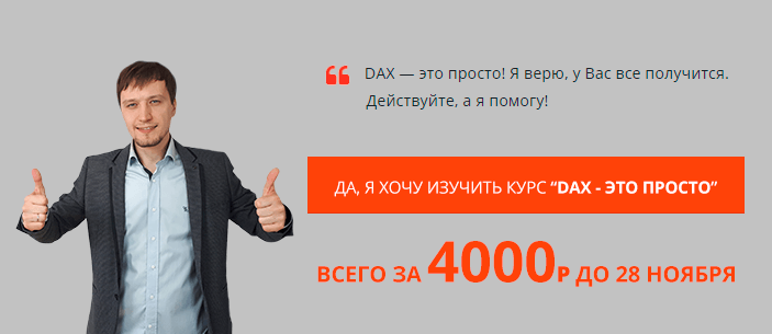 Узнать все подробности о курсе «DAX — это просто», а также заказать его со скидкой 60% всего за 4000 руб. с возможностью СКАЧАТЬ курс на свой ПК (+ обратная связь от автора), Вы можете на странице курса, кликнув по кнопке ниже (до 28 ноября):