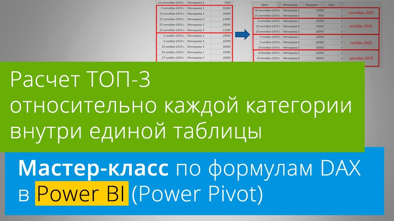 - Подробное ВИДЕО «Расчет ТОП-3 относительно каждой категории внутри единой таблицы в Power BI и Power Pivot»